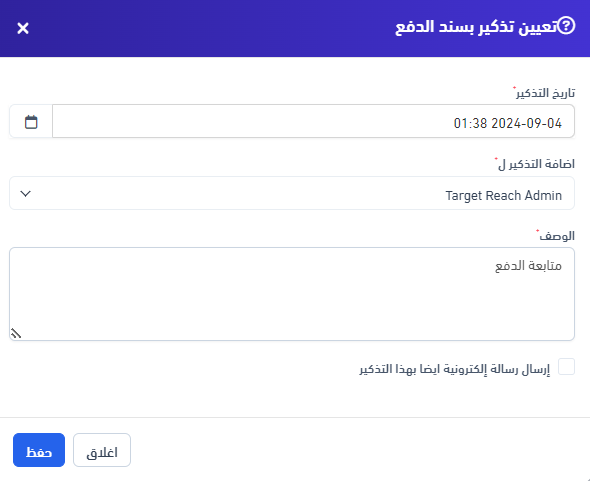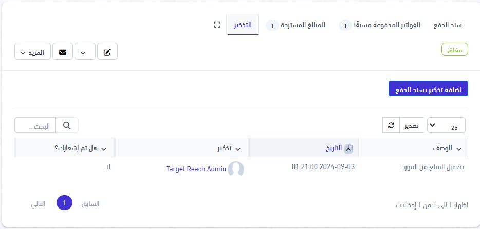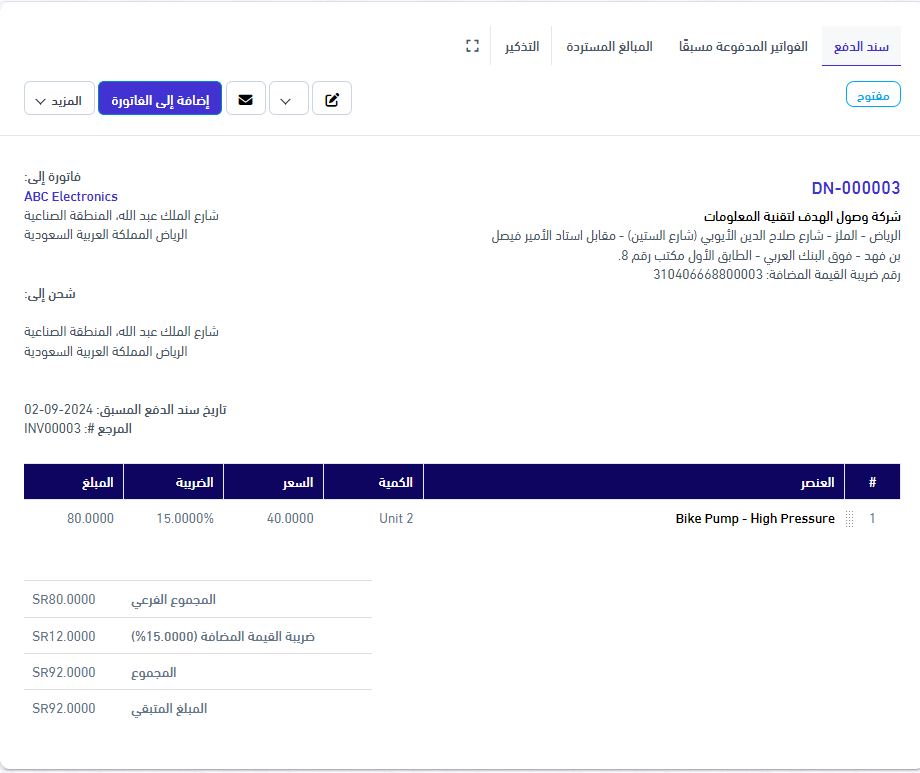 - تسجيل دفعة مقدمة: لتوثيق دفعة تم دفعها للمورد.