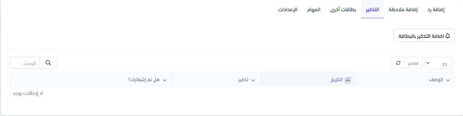- لإنشاء تذكير للبطاقة، استخدم خيار "التذكير".