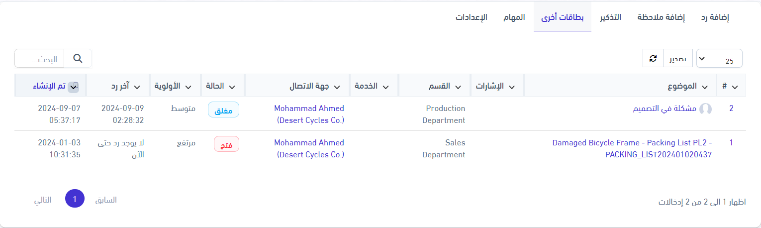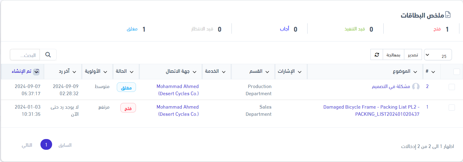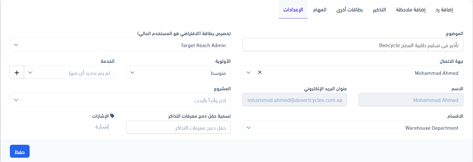 - يمكنك مشاهدة تفاصيل البطاقة والرد على العميل من خلال هذا القسم.