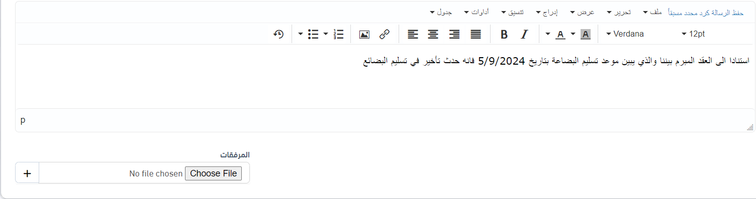 - استخدم خيار "إضافة رد مسبق" لإدراج رد من الردود المثبتة على النظام.