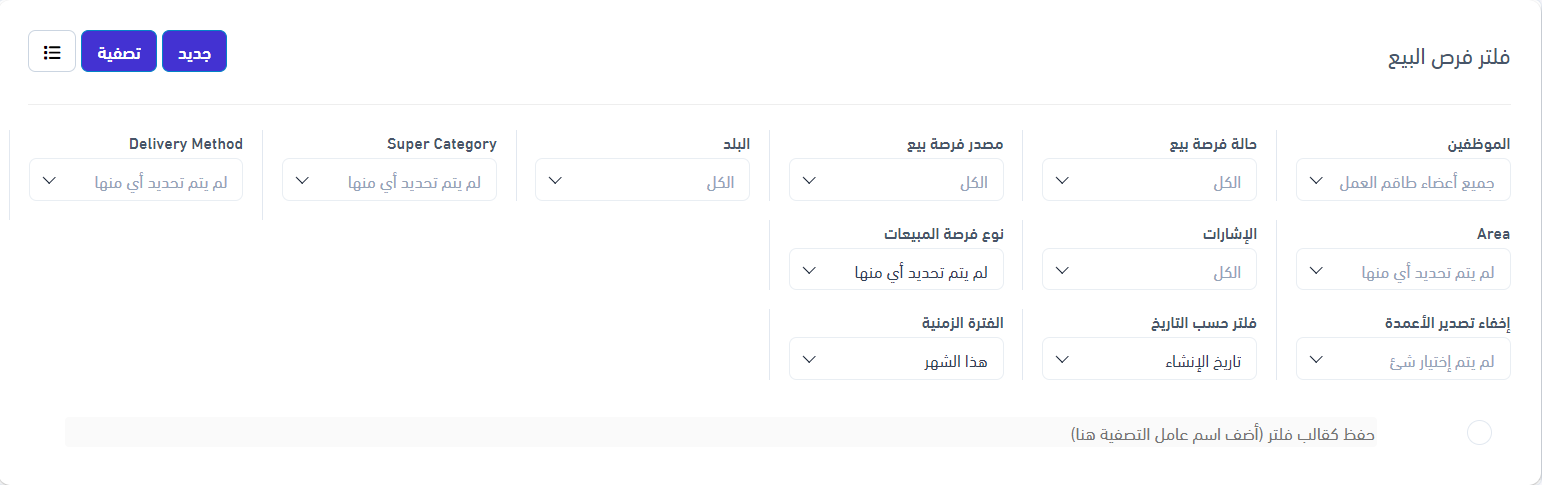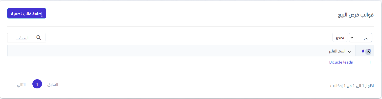 قالب فرص البيع يمكنك من هنا إنشاء وإدارة قوائم التصفية التي تم إنشاؤها سابقاً.